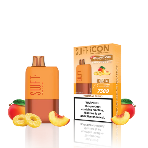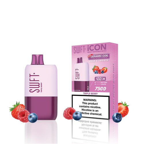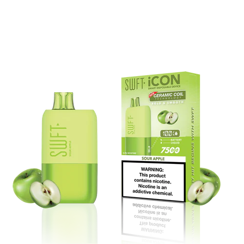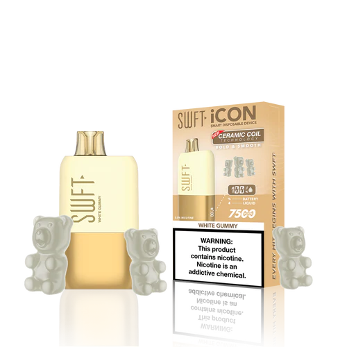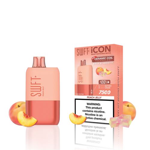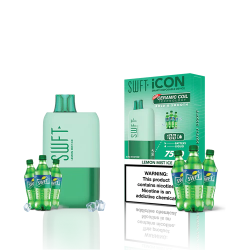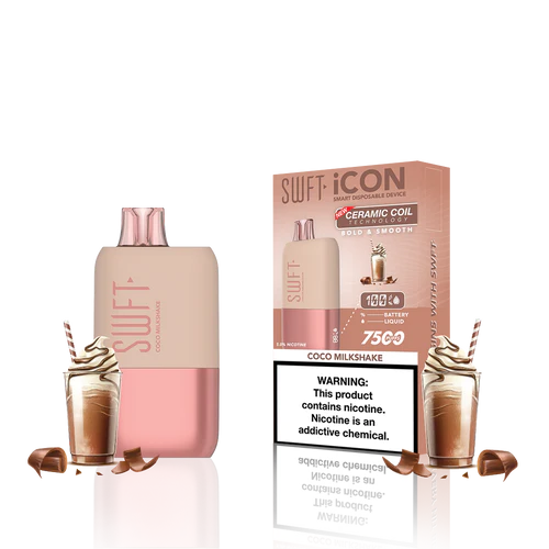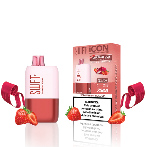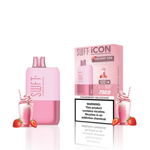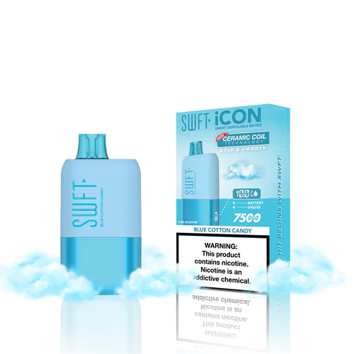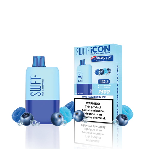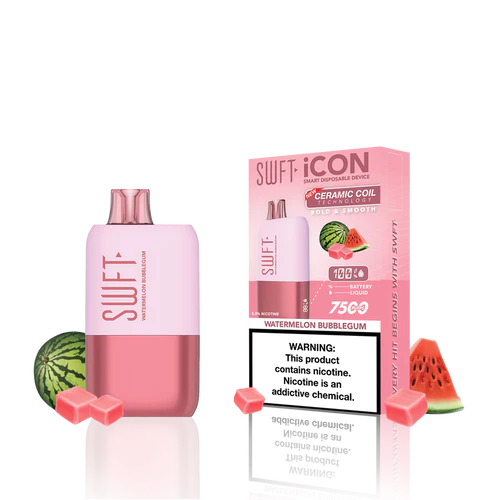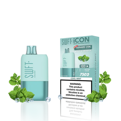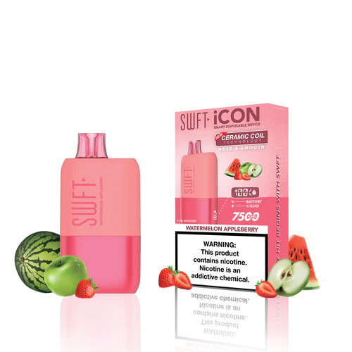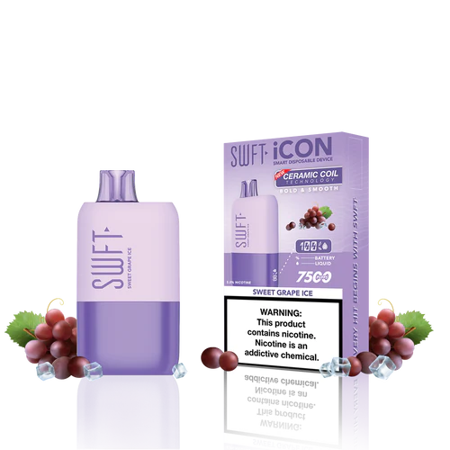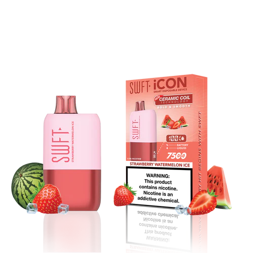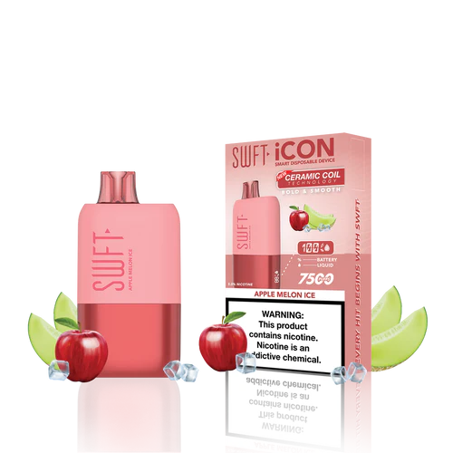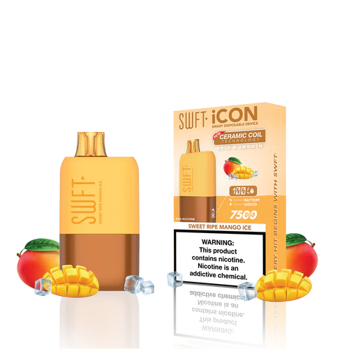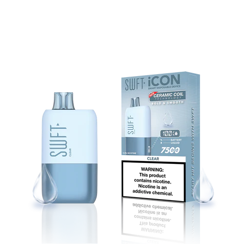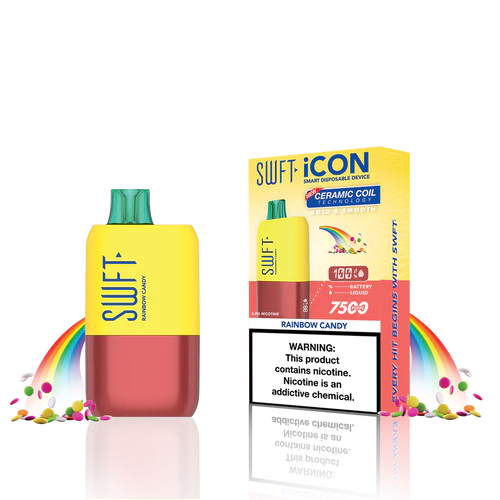 SWFT iCON Disposable Vape features a CERAMIC COIL allowing for 7500 Puffs and comes with a Type-C charging cable. The iCON is pre-filled with 5% salt nicotine e-liquid and comes packaged as a disposable unit. SWFT iCON Disposable has a powerful 500mah rechargeable battery allowing for continued use after recharging. It also comes pre-filled with e-liquid, so you can always enjoy a liquid capacity of 17ml every time. Enjoy a flavorful vape with all the perks and no maintenance. If you’re looking for a vape device that looks great and tastes great, this is for you.